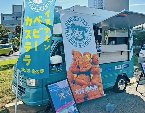 泉佐野市の公式キャラクター「イヌナキン」の形をした美味しいベビーカステラ。キッチンカーにもイヌナキンをデザインし、泉佐野市のPRや観光プロモーションを行っています。